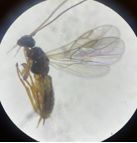 While this pest is still relatively new or unnoticed in Indiana, if left unchecked, it can cause significant damage when feeding moves into the fruit. We have noticed in HT systems that pruning seems to be an effective tactic that may be inadvertently managing the population. If TPW is present, be sure to remove and destroy all pruned vegetation. If you are interested in augmentative biological control, Trichogramma egg parasitoid wasps are commercially available and can be purchased and released. The larval parasitoid wasp Parahormius pallidipes (Fig. 5) has been found in tunnels in West Lafayette, but it is not commercially available, and little is currently known about its native distribution or impacts on TPW populations. If you choose to use pesticides to manage TPW, refer to the Midwest Vegetable Production Guide and search under caterpillar pests in tomato to find recommendations. As these are internal foliage feeders, timing of applications and mode of action will have an impact on efficacy. If the product remains on the plant surface, the caterpillars will encounter a lethal dose at egg hatching and upon exiting the mine as 3rd-instar larvae. As always, when applying pesticides, follow the label as it is the law.